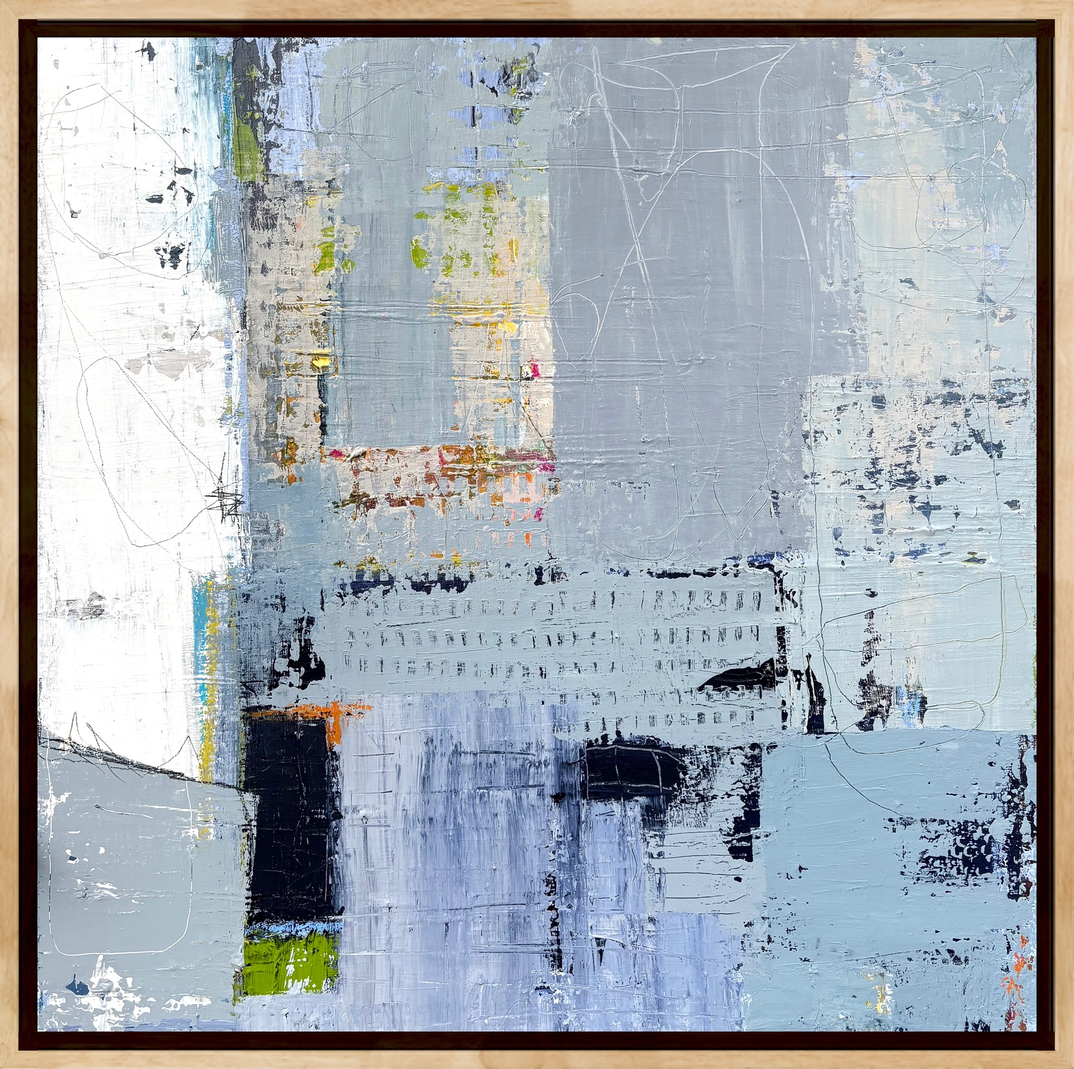 Ellen is a self-taught local artist who works primarily with acrylic paints, oil pastels and other mixed media to create abstract pieces. Her influences are mid-century modern design combined with the depth of peeling walls providing hints to what lies underneath. Utilizing a harmonious palette, she applies, removes, and carves into the paint creating angular and geometric shapes which evolve into spatial conformity. Ellen’s artwork has been recognized by numerous juried shows both locally and regionally. Willing to take risks through experimentation and new techniques is essential to her process. She has effectively and enthusiastically been able to work with acrylic, oil pastels, resin,