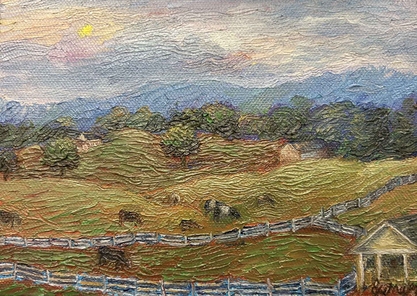 Title: Grazing at Dusk, New Pond Farm
