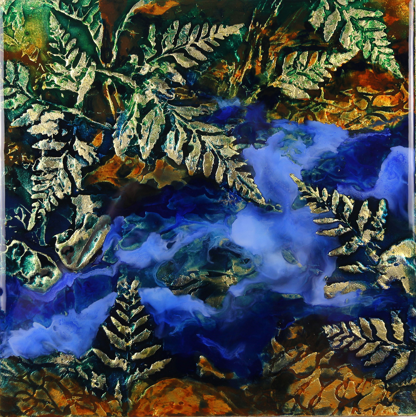 Medium: Modeling paste, gold leaf, acrylic, resin
