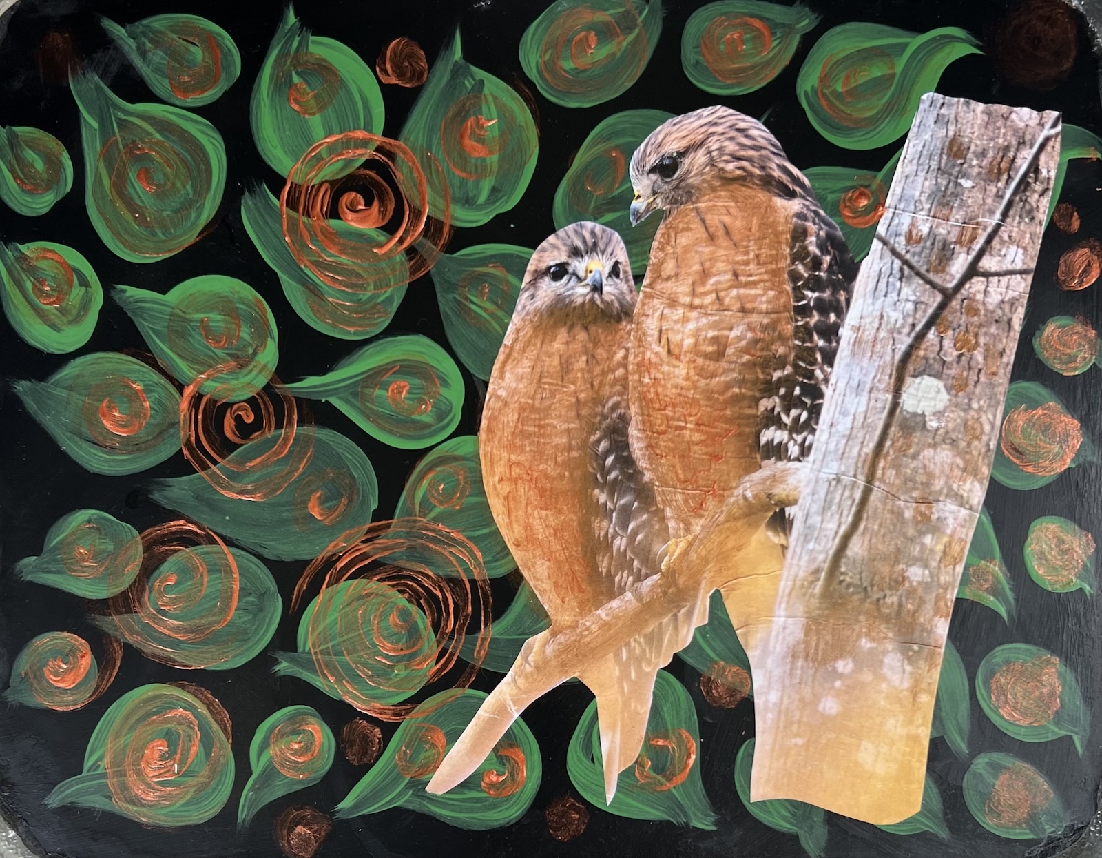 Medium: Mixed media collage of cardboard, paper, paint, glue & varnish